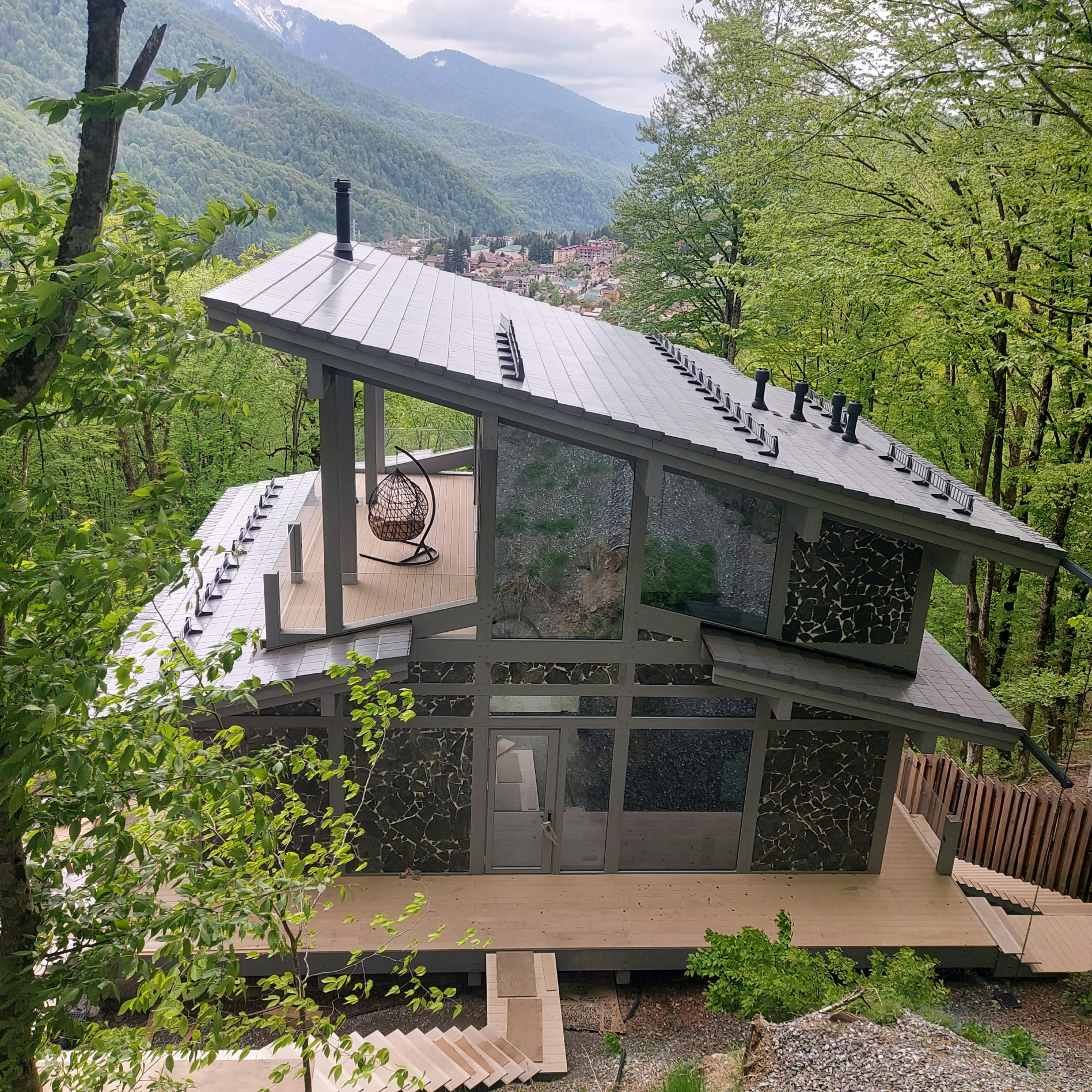 Это энергосберегающий сборный деревянный дом, произведенный на заводе.